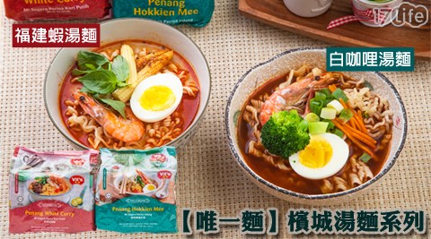 平均最低只要20元起(4袋免運)即可享有【唯一麵】檳城湯麵系列(4入/袋):4入/24入/36入/48入,口味:福建蝦湯麵/白咖哩湯麵。